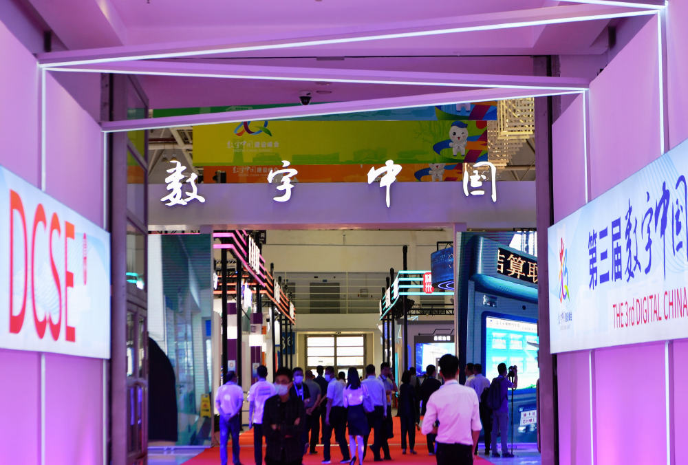 這是在福建福州舉行的第三屆數字中國建設峰會上拍攝的數字中國建設成果展覽會(2020年10月12日攝)。新華社記者 魏培全 攝