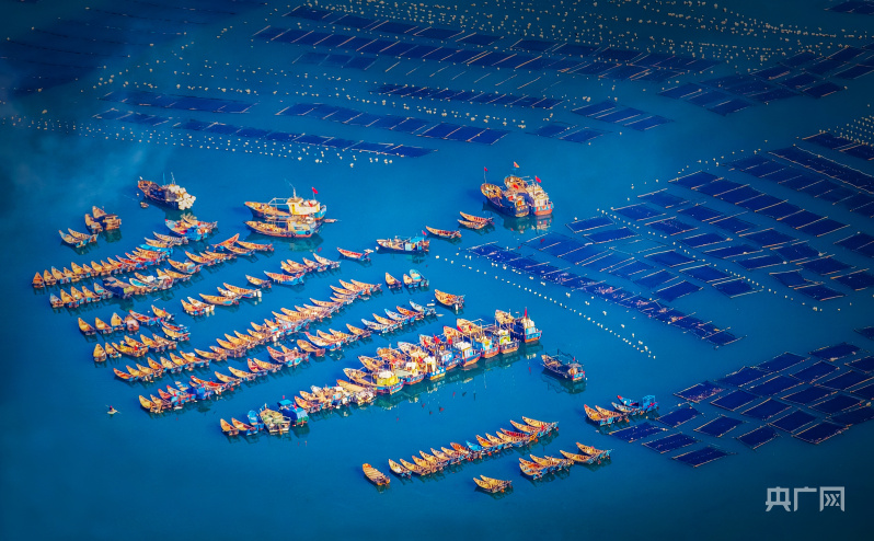 福建省連江縣黃岐鎮海域漁船、漁排相映成趣(央廣網發 程慶雄攝)