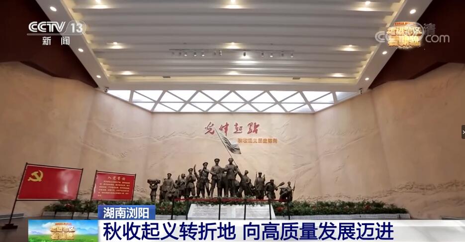 在秋收起義文家市會師紀念館,這座雕塑的造型是中國工農紅軍打出的第一面軍旗,名字叫“光輝起點”,這也激勵老區人民不斷前進。
