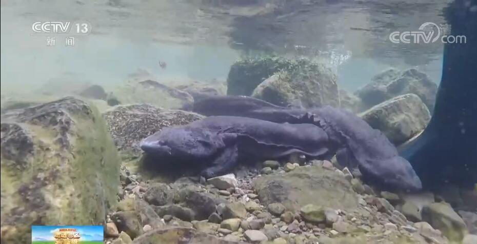 我們現在看到的這些大鯢是2017年出生的,今年5歲了,相對于大鯢的平均壽命,它們現在還相當于人類的青少兒時期。大鯢很容易感到緊張,而且它一緊張就會全身會分泌粘液,所以我們放歸的時候會采取大盆換小盆的方式。現在它們正隔著水盆適應溪水的溫度,再把它們放入溪水。它們會尋找石洞或縫隙躲起來。科研人員告訴我們,春夏季節正是大鯢生長發育的關鍵期,放歸之后,巡護隊會加強24小時的巡查,希望這些大鯢能盡快適應野外的環境,并且在這里好好地生活下去。