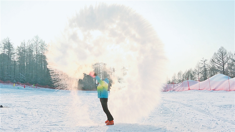 慶安望龍山滑雪場“潑雪成冰”。 王娜 本報記者 董新英攝