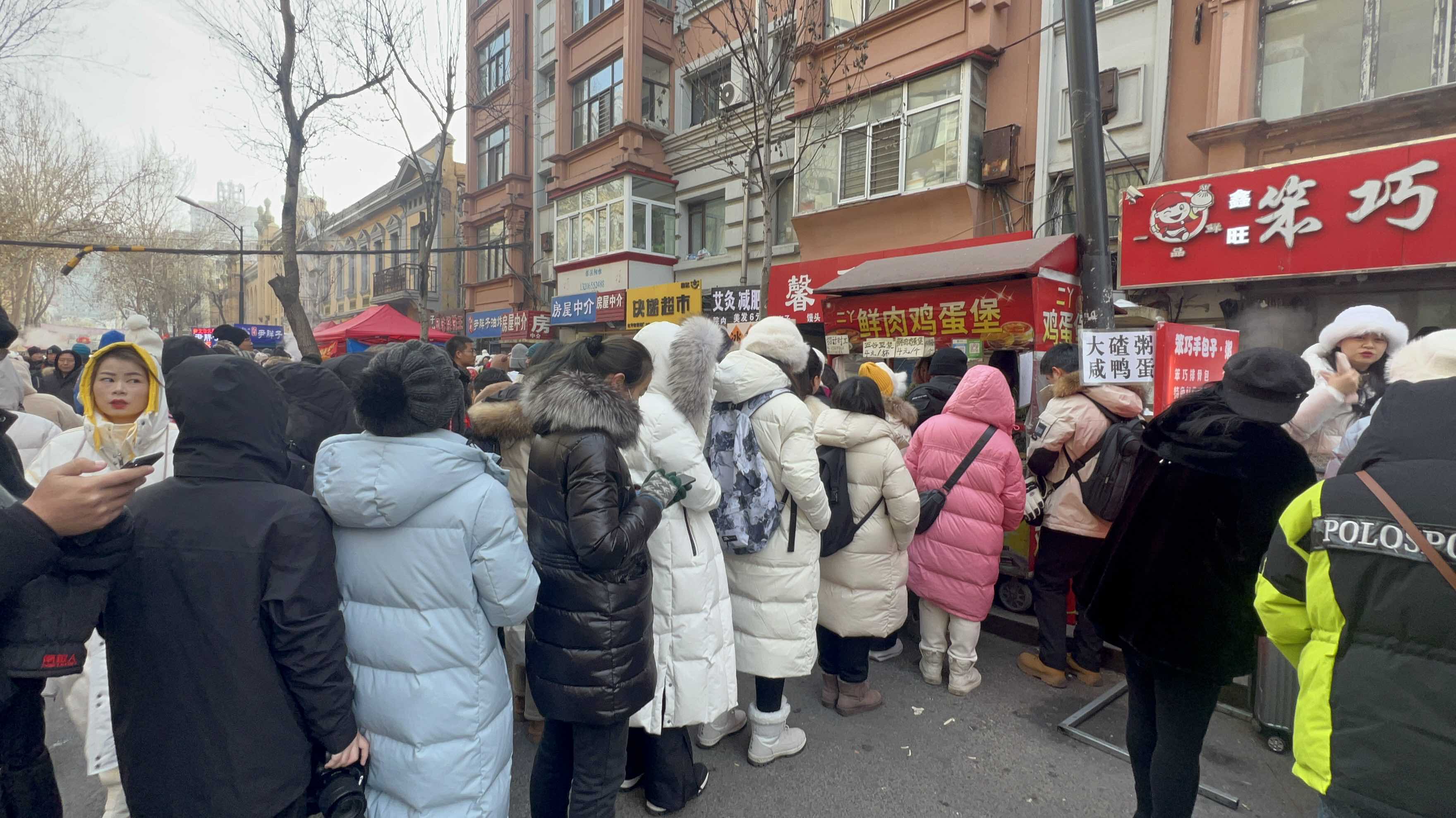 2月11日,大年初二。7時許,晨光熹微中的哈爾濱街路上還看不到什么人。位于道里區的紅專街早市,“人從眾”,你品吧,百余個攤位,家家顧客盈門,攤位排隊少則幾十人,多的無尾無邊。或為某個美食慕名而來,或為莫名“盲”排。“只要排隊,味道肯定錯不了。”