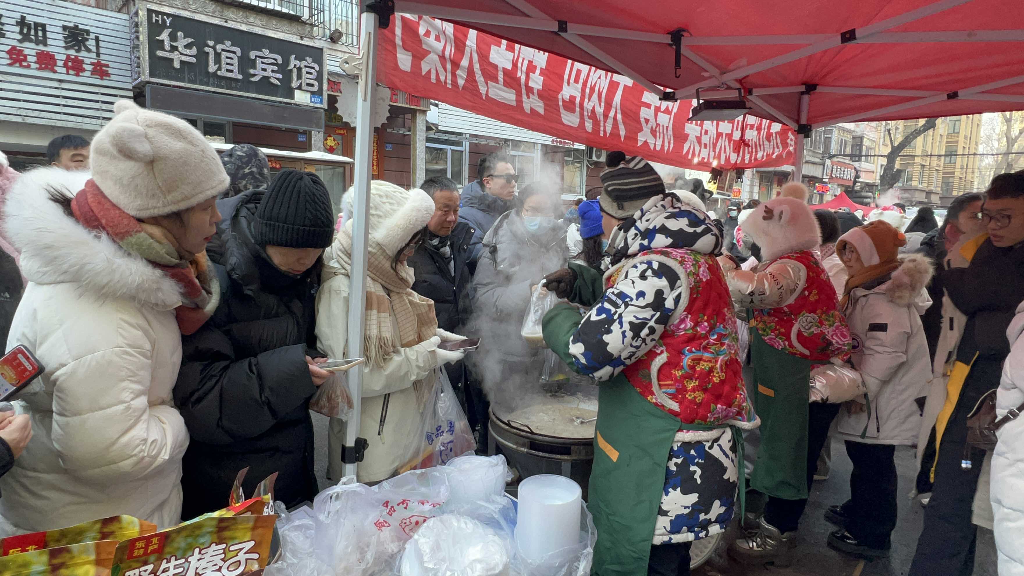 “潑天”的流量,讓一個多月來早市攤主們應接不暇。經營殺豬菜的姜帥為了讓“小金豆”們品嘗到正宗的東北美食,每天凌晨就起床燉煮菜品。一天睡不上幾個小時,臉上卻笑容洋溢:“總說我們‘爾濱’人熱情,其實游客對我們的認可,更是我們心里的最暖。”姜帥說,這個春節,來紅專街早市的游客明顯多了,他的殺豬菜一路翻倍儲備,“看著他們吃得開心,我也打心眼里高興。”