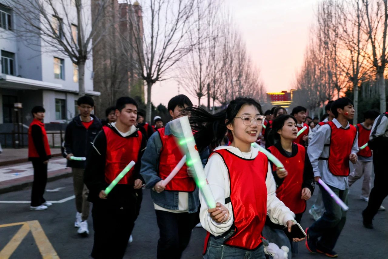 趣味運(yùn)動(dòng)會(huì)上熱鬧非凡,旱地龍舟、圍圈接棍、急速三子棋、十人九足……同學(xué)們以青春熱情展現(xiàn)出一幅迎接亞冬會(huì)的活力畫卷。伴隨著發(fā)令槍響,熒光夜跑活動(dòng)火熱開啟。1200名華德“青春領(lǐng)跑員”身穿熒光衣、手持熒光棒……在校園內(nèi)激情奔跑,與“爾濱”“同頻共振”。奔跑的姿態(tài)匯聚成移動(dòng)的星河,成為冰城夜色中亮麗風(fēng)景線,留下了“全民迎亞冬”的美好印記。