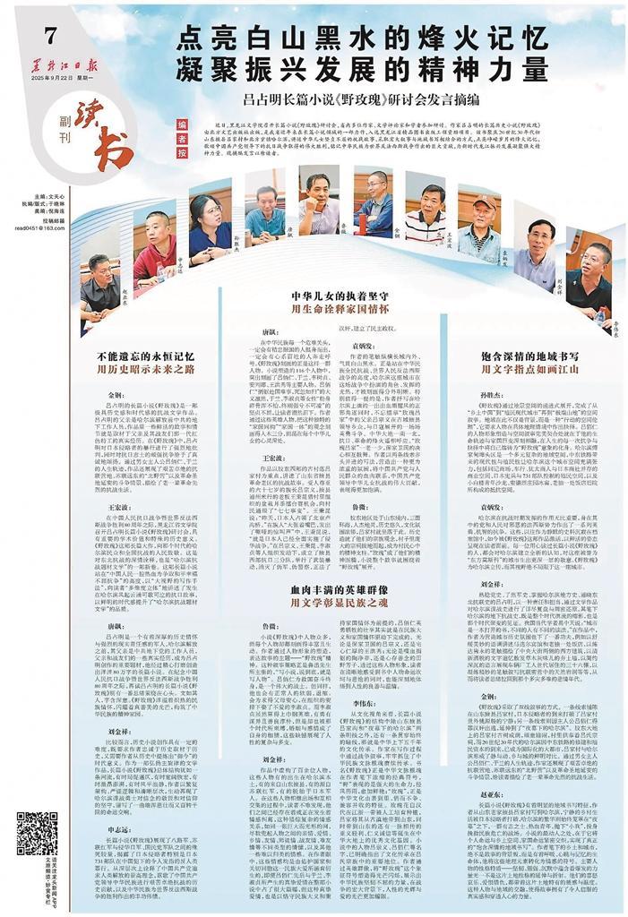 沒想到小說完成后,10位專家的評論,竟被《黑龍江日報》用一整版刊了出來。捧著那版報紙時,我的手止不住地抖。這不是普通的版面,是我從小敬重的黨報,是50年前載著《露營之歌》走進我家的報紙——它把我對文學的追求,變成了對父親那代“沉默者”的致敬。父親走得早,可我知道,他若看見這一幕,定會像當年那樣,指著報紙說:“背下來。”這文字,是獻給所有用生命守護過這片土地的人,也是獻給每個用文字打撈歷史的人。