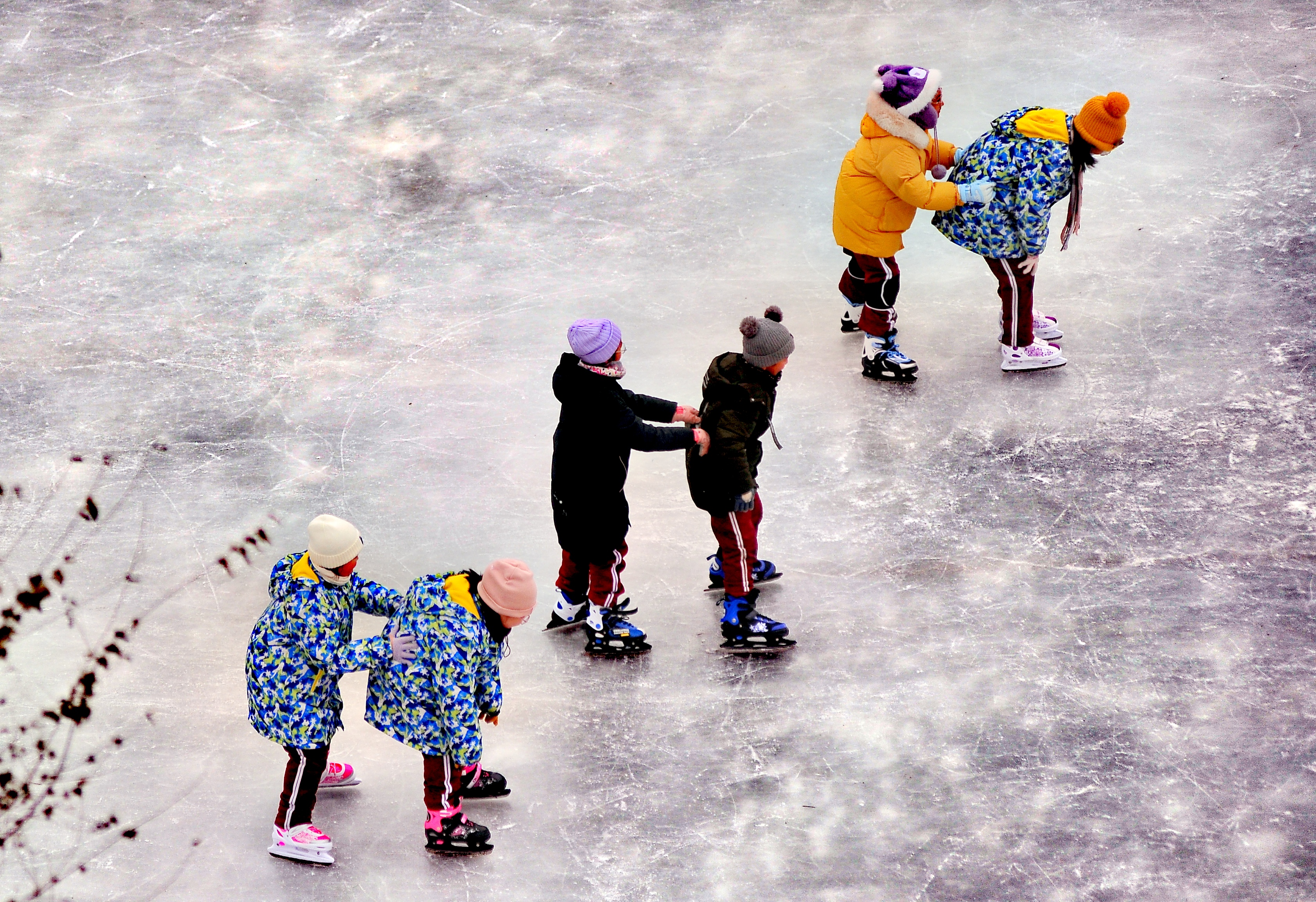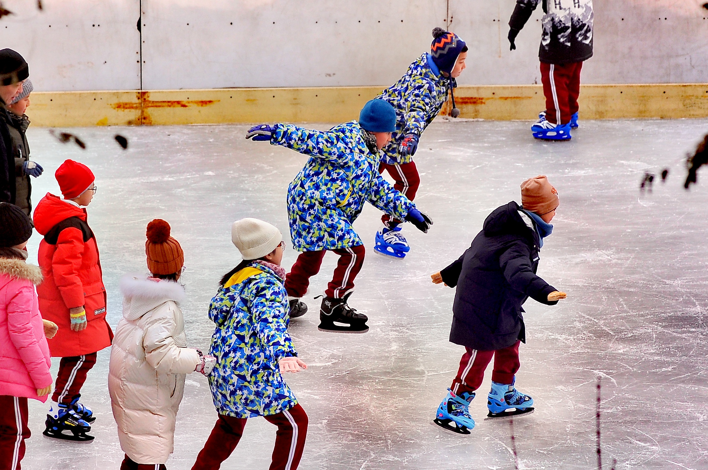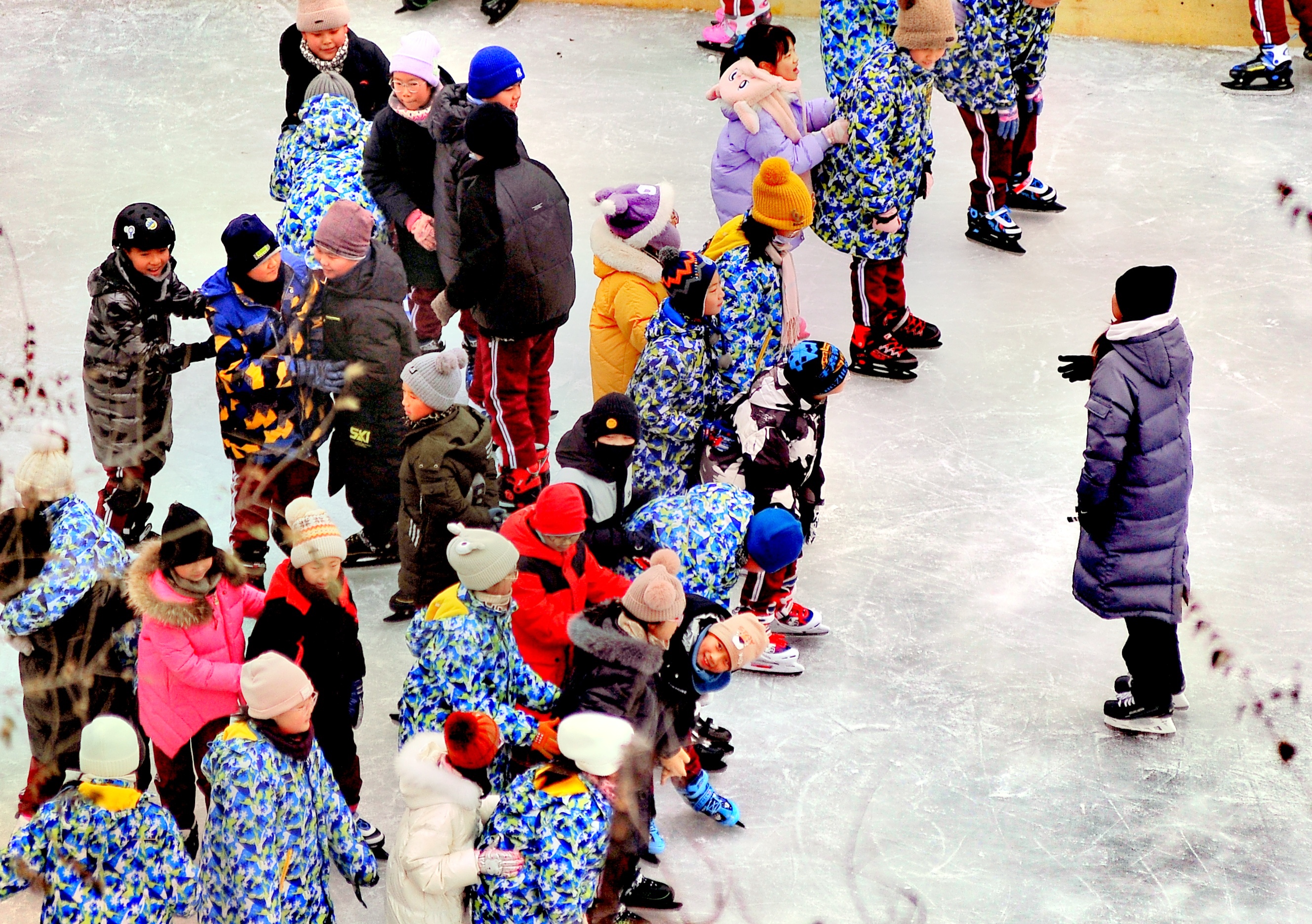 這些學生中有的是新手,需把著護欄前行,生怕摔倒;有的已是冰場“老將”,在冰面上隨意加速、剎車。