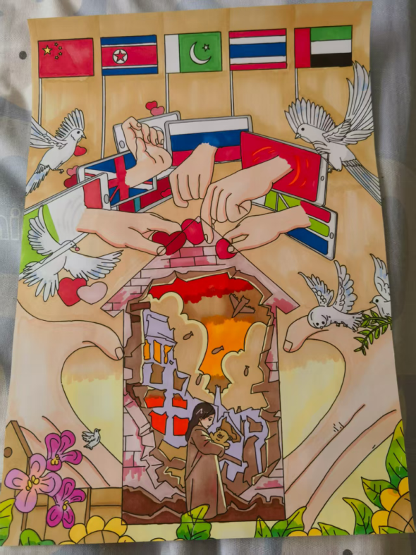 據了解,本次活動自7月15日啟動以來,重點面向周邊國家和地區少年兒童征集作品,通過繪畫形式展現各國人民對和平與發展的共同向往。