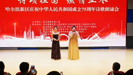 為慶祝中華人民共和國成立75周年,弘揚愛國主義精神,增強民族自豪感和凝聚力,9月28日,由哈爾濱新區黨工委主辦,哈爾濱新區黨工委宣傳部、哈爾濱新區黨工委社會工作部、區直機關工委、區總工會、團區委、區教育局、區文廣體旅局等單位共同承辦的“詩頌祖國 燃情亞冬”慶祝中華人民共和國成立75周年詩歌朗誦會在哈爾濱新區一校舉行。