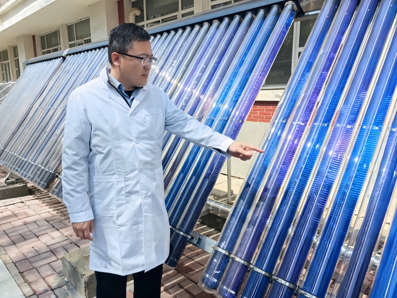 李棟查看新型翅片式太陽(yáng)能光熱組件運(yùn)行機(jī)理數(shù)據(jù)