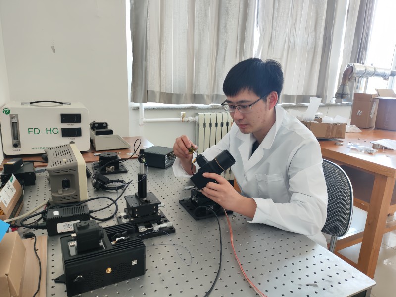王迪調(diào)試最新研發(fā)的高靈敏逸散性碳排放激光遙測(cè)樣機(jī)