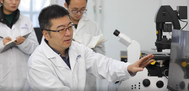 孫先達(dá)指導(dǎo)學(xué)生做激光掃描共聚焦頁(yè)巖油組分可視化實(shí)驗(yàn)