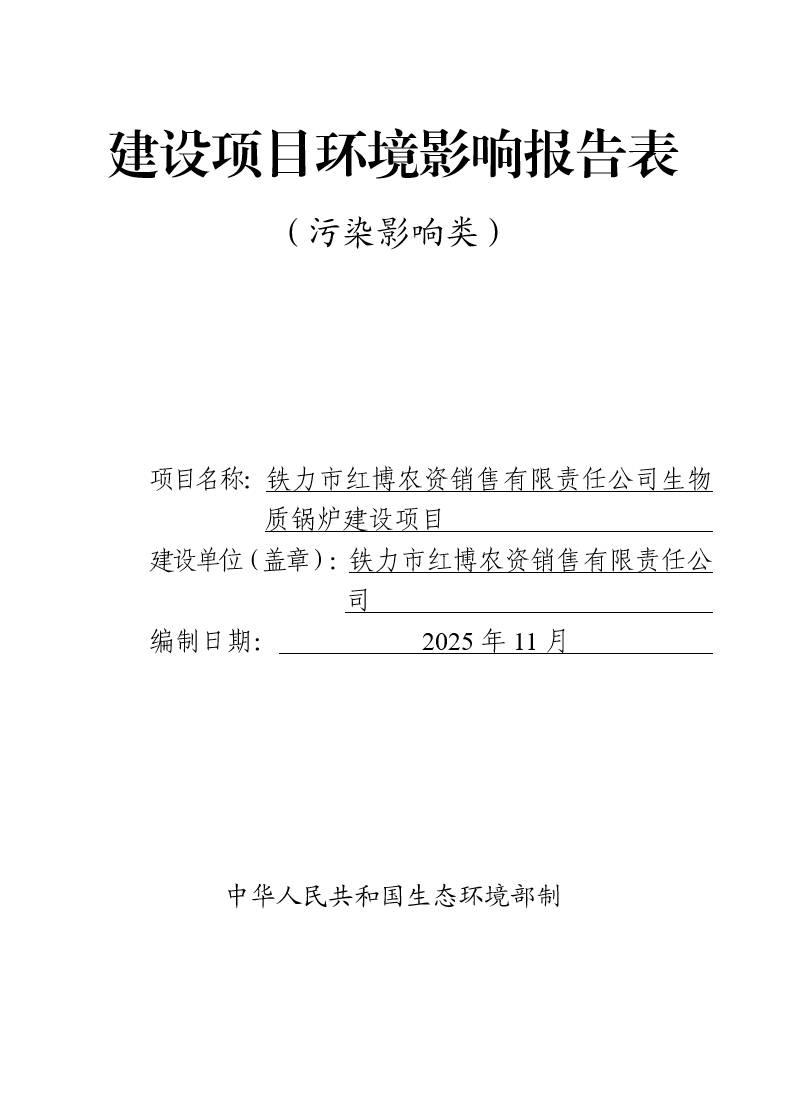 鐵力市紅博農(nóng)資銷售有限責(zé)任公司生物質(zhì)鍋爐建設(shè)項(xiàng)目環(huán)境影響報告表